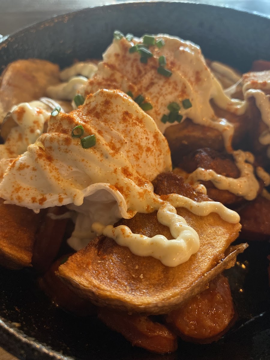 For a touch of Spanish flair, Natas Café Bar serves Patatas Bravas, crispy potatoes drizzled with a rich tomato sauce and aioli. This dish is a great snack or appetizer to share with friends while you sip on a chilled glass of wine or enjoy the café's selection of hard liquor. It's one of those dishes that always gets rave reviews from anyone who visits.